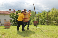 Po vrnitvi v Šmarje smo jim pripravili zabaven program s srečelovom in domačo ponudbo na stojnicah ter ogled razstave starih gospodinjskih pripomočkov, ki so jo pripravili učenci podružnične osnovne šole Šmarje. Popoldne smo zaradi prvotno slabe vremenske napovedi namesto pravih iger pripravili prvi uradni trening za kmečke igre, na katerem so se pomerile ekipe iz Šmarij, Štanjela in Podnanosa, medtem ko se jim bosta ekipi iz Gaberij in Spodnje Branice pridružili na uradnih kmečkih igrah 2. junija 2013.