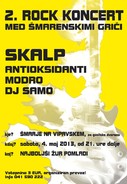 Prvi del dogajanja, namenjen predvsem mladim pripravljamo že 4. maja, ko ob 21. uri zvečer v Šmarjah začel 2. Rock koncert med šmarenskimi griči. Za odlično razpoloženje bodo poskrbele glasbene skupine Skalp, Antioksidanti in Modro, ki bodo mlade zabavale na travniku za gasilskim domom oziroma v primeru dežja v dvorani gasilskega doma. Mladi se bodo na prireditev lahko varno pripeljali z organiziranim kombi prevozom (info 041 590 222).