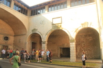 Najprej smo se ustavili v Palmanovi, kjer smo si ogledali arhitekturne posebnosti, ki jih skriva to zanimivo mesto zgrajeno v obliki deveterokrake zvezde in s svojimi utrdbami tvori zgled vojaškega mesta. Zgrajeno je bilo kot branik pred vpadi Turkov, Uskokov in pred osvajalskimi ambicijami Avstrije, danes pa je zaščiteno kot nacionalna dediščina. Ker Palmanovo poznamo predvsem kot nakupovalno središče, smo želeli odkriti še njeno zgodovinsko plat. Od videmskih vrat, ki smo si jih najprej ogledali, v bližini pa tudi obrambne nasipe in zidove, smo se po eni izmed simetričnih ulic podali do osrednjega trga. Tudi ta je urejen in namenjen predvsem sprehajalcem. Našo pozornost je tam pritegnila baročna katedrala, nato pa smo si privoščili pravo italijansko "kafe".