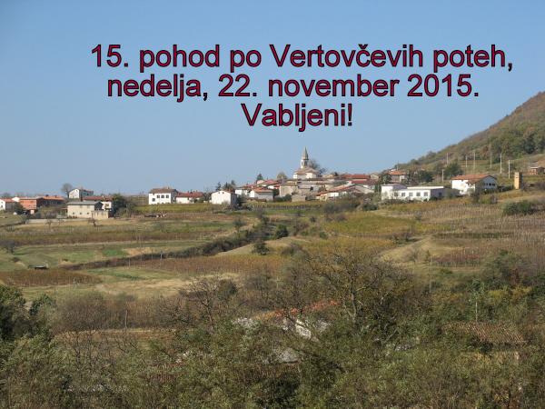 15. Pohod po Vertovčevih poteh bo potekal 22. novembra 2015 s startom od 8. ure dalje pri mogočnem hrastu na Ustjah. Ob 11. uri vabljeni k sveti maši v Šmarje, po maši sledi osrednja proslava, obenem bo v Šmarjah poskrbljeno tudi za malico. Vabljeni na najlepši jesenski pohod po vipavskih gričih!