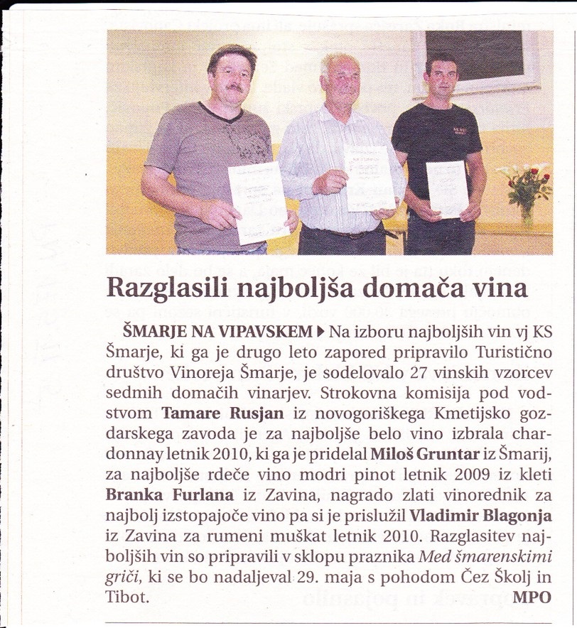 Razglasili najboljša domača vina, Primorske novice, 17. 5. 2011