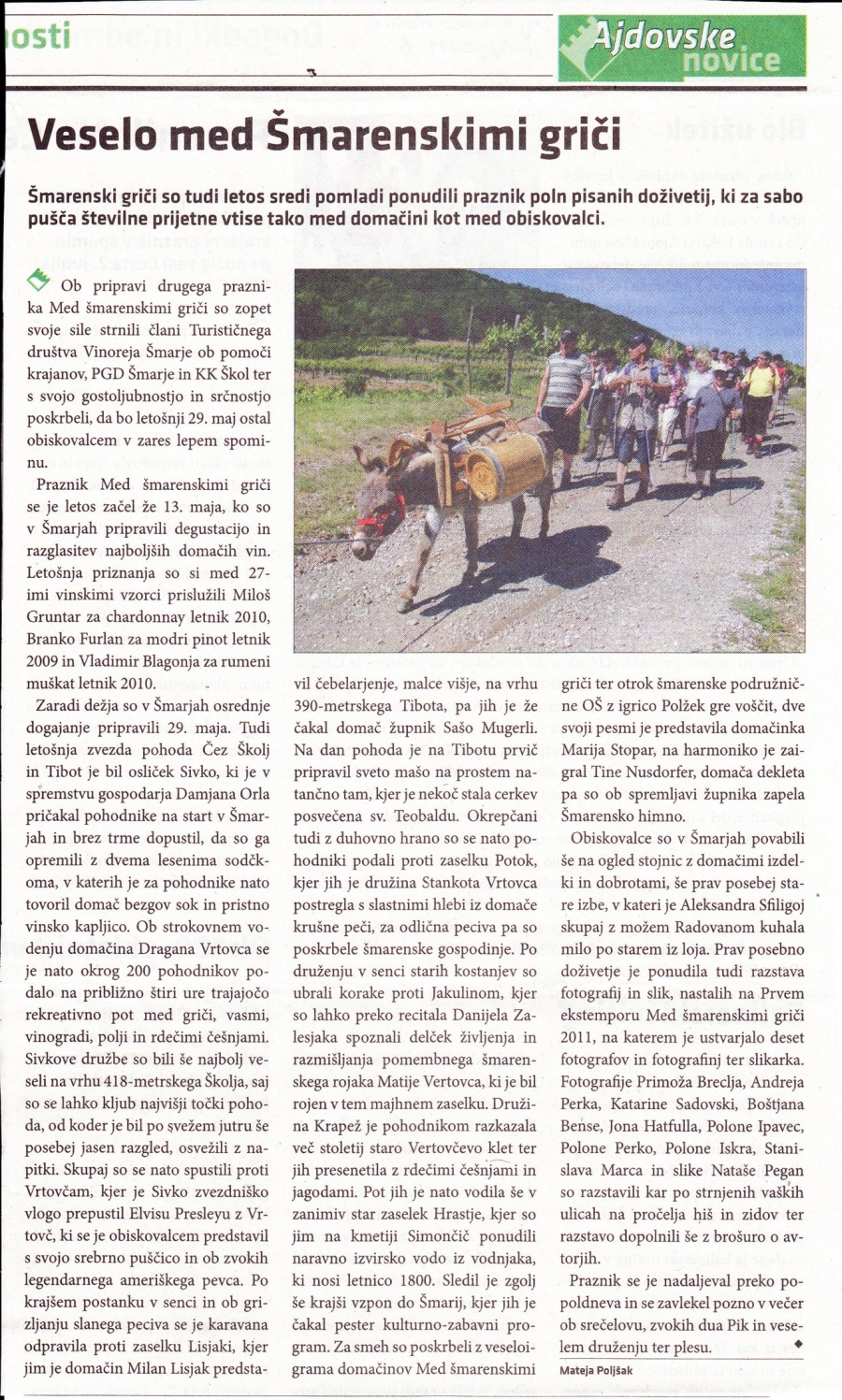 Veselo med Šmarenskimi griči, Ajdovske novice, junij 2011